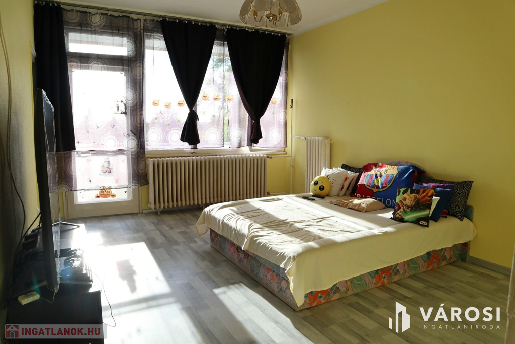 Eladásra kínálom Békés központjában a Széchenyi téren található IV. emeleti 71 m2-es tégla építésű lakást, mely a lakóépület zárószintjén helyezkedik el. Az ingatlan elmúlt évek során nagyobb felújításon nem esett át, a villanyvezetékek és a helyiségek burkolatainak cseréjét kivéve, de folyamatosan karbantartott, jó állapotú. A társasház tetőszerkezetének hőszigetelése a közelmúltban megtörtént. A 2 erkélyes lakásba, tiszta lépcsőházon és függőfolyosón keresztül juthatunk, ahonnan pazar kilátás nyílik Békés belvárosára. A fűtésről a lakótömbben található központi gázkazán gondoskodik, így a rezsiköltség is igen kedvezően alakul.