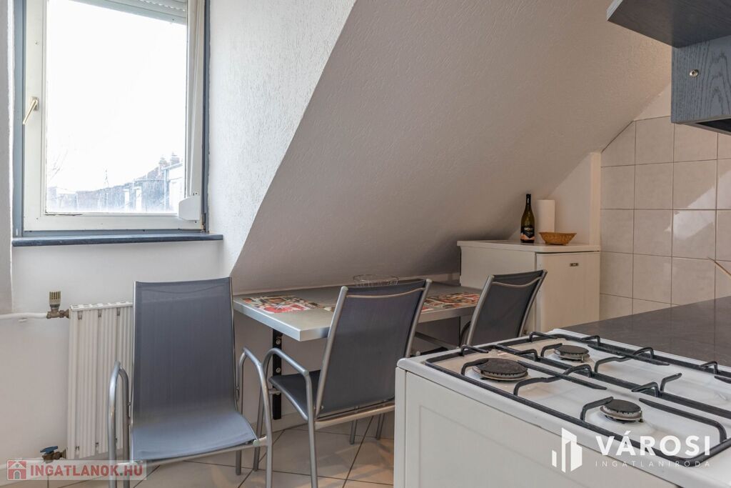 Eladásra kínálom Békéscsaba belvárosában, rendezett, 1991-ben épült társasház 4. emeletén található, téglaépítésű tetőtéri lakást.