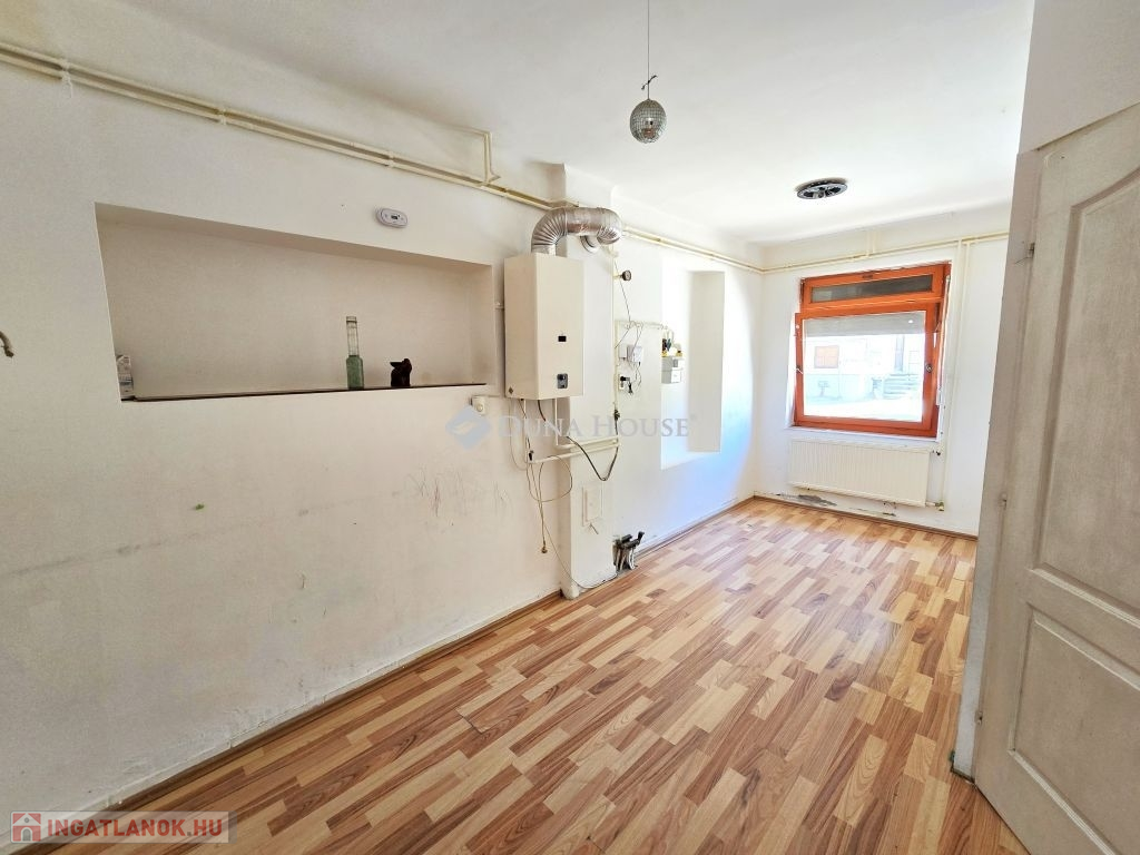 KIVÁLÓ BEFEKTETÉS!!! Bóly központi részén a Hősök terén eladó egy 90-es években épült, belső 2 szintes, 66 nm hasznos alapterületű (br. 75 nm), jelenleg 2 külön lakrészből álló, egyedi elosztású, gázkazánnal fűtött, tégla lakás.