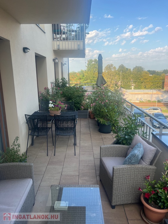 A lakás nettó 46 m²-es, amelyhez egy 16 m²-es, részben fedett, térkő burkolatú terasz tartozik. A terasz fele (8 m²) beleszámítható az alapterületbe, így a lakás összes hasznos mérete 52 m², ami megfelel az OTTHON START hitel feltételeinek.