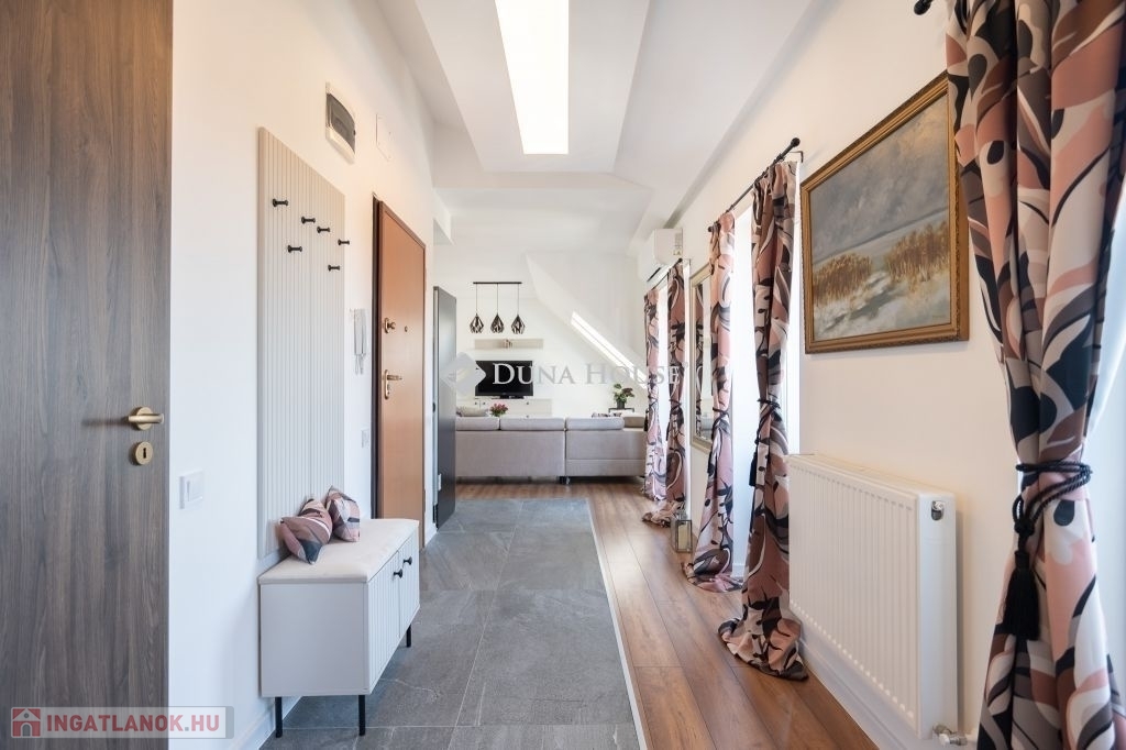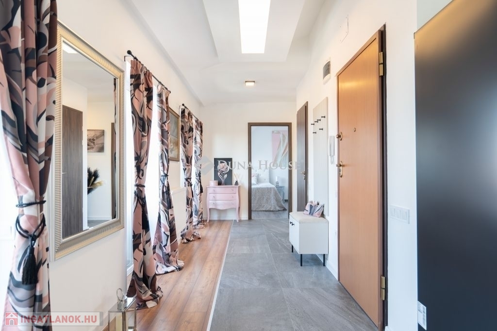 A bruttó 77 nm-es lakás egy 10 éve épült lakópark legújabb, 2022-ben átadott épületében található.