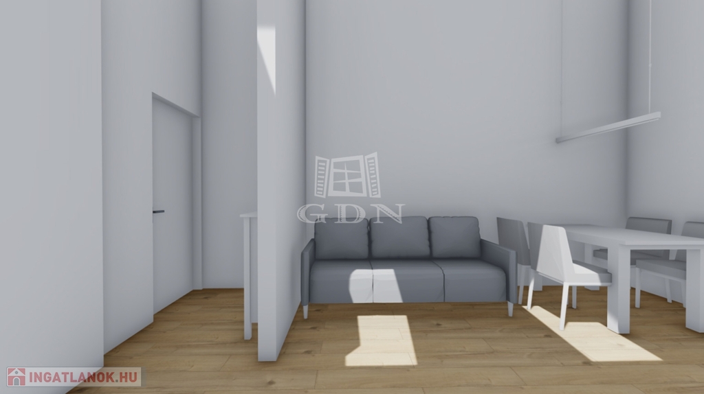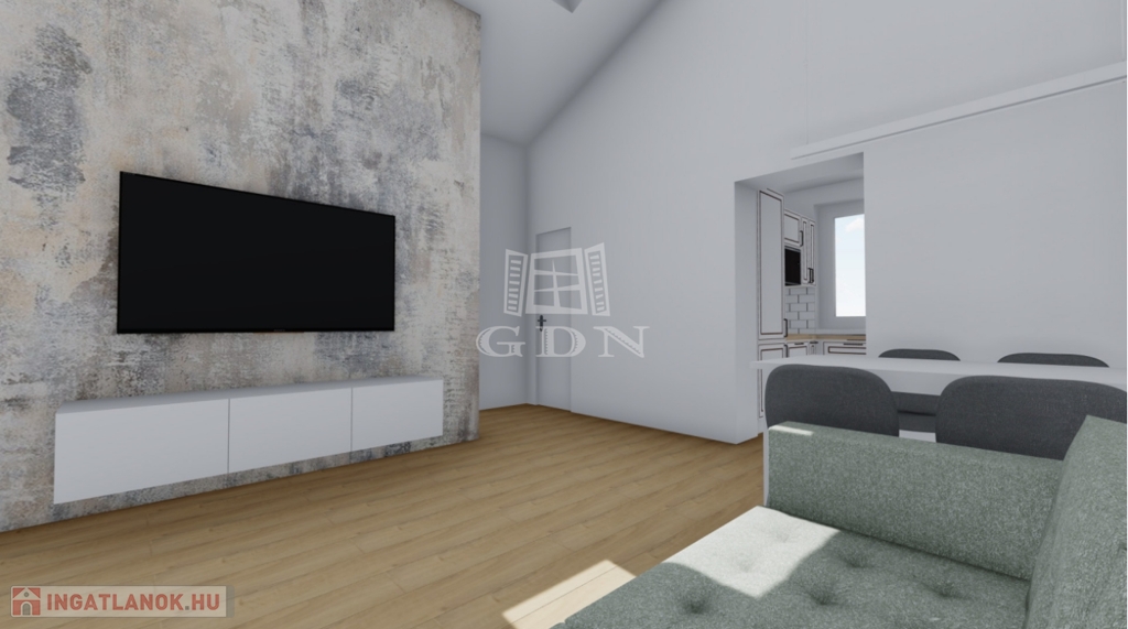 A "mintatervek" alapján egy nettó hasznos 42 m2 alapterületű lakás lenne kialakítva, amely nappali + hálószoba + gardrób + konyha + fürdőszoba helyiségekből állna.