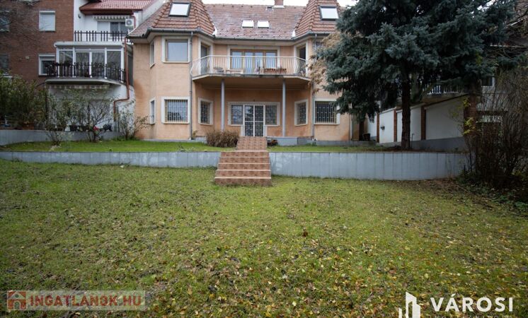 Az ingatlan elhelyezkedésének köszönhetöen, néhány lépcsőt lefelé kell menni a lakás megközelítéséhez, mivel az az alsó szint, de cserébe az egész kert, terasszal a lakáshoz tartozik kizárólagosan.