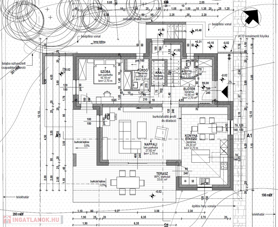 Tájolása tökéletes, reggeltől délutánig beragyog a nap. Az 51 m2-es nappaliba a hatalmas teraszajtóknak köszönhetően kora reggeltől délutánig besüt a nap. A nappaliból és a konyhából is közvetlenül kiléphetünk a 34 m2-es teraszra, ahol a család igazi kényelemben együtt élvezheti a jó levegőt, a kertet és madárcsicsergést. A földszinten található egy önálló fürdőszobával (wc, zuhany, kézmosó) rendelkező szoba, tároló, előszoba, wc és egy 51 m2-es amerikai konyhás nappali. A földszinti hálószoba kiválóan alkalmas vendégszobának, szülői hálónak, idős szülő számára, vagy akár irodának. A kert gondozásához nagy segítséget nyújt az automata öntözőrendszer, és a vízgyűjtő, ami a lehullott csapadékot tárolja az öntözésig.