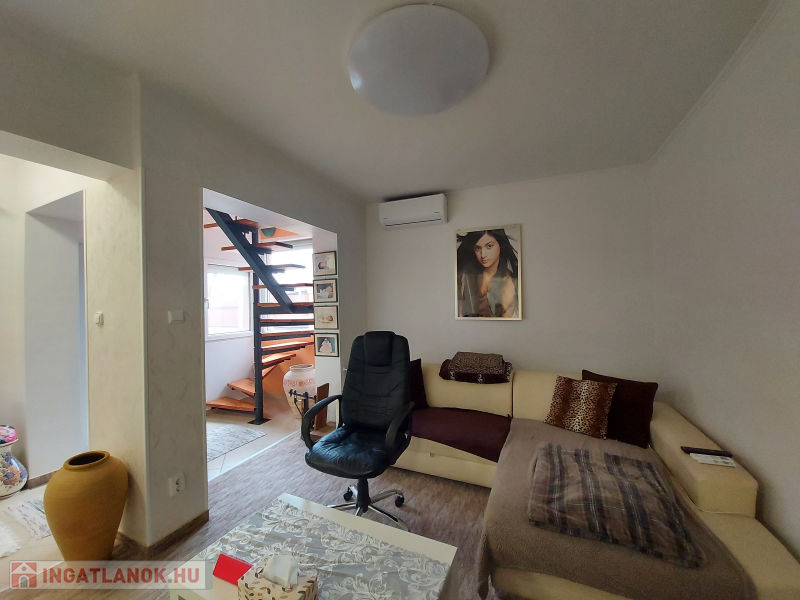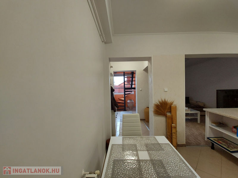 Extrák: tároló, terasz, kerthasználat, panoráma, alacsony fenntartási költség, amerikai konyha, beépített tetőtér, beépített szekrények, boltok a közelben, csendes környék, étkező, iskola a közelben, jó közlekedés, kaputelefon, WC, klíma, központi elhelyezkedés, melléképület, modern szigetelés, nappali, parketta, redőny, riasztó.