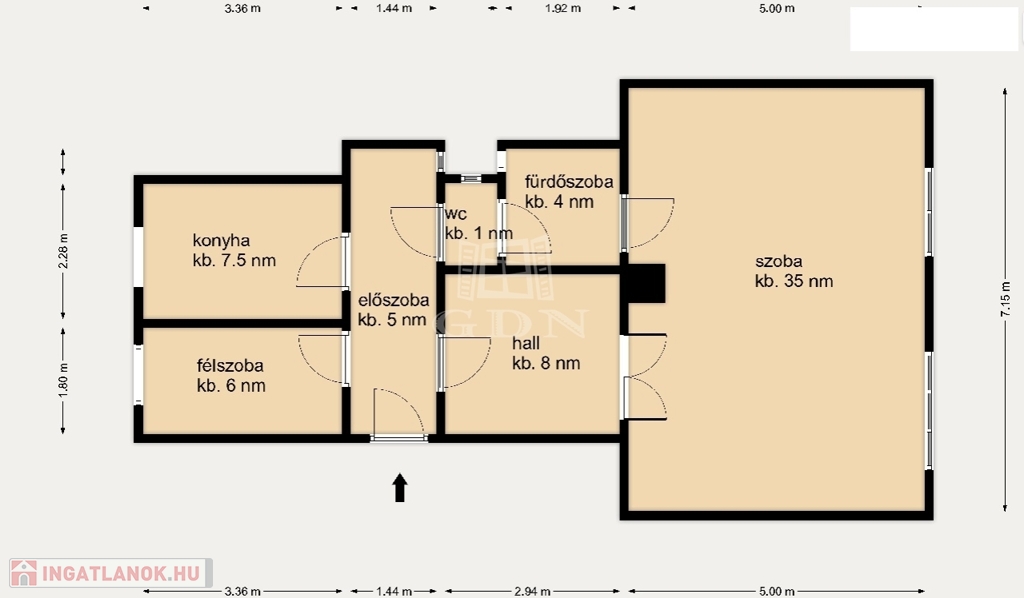 • 1 nagy szoba (35 m² – akár ketté is választható)
