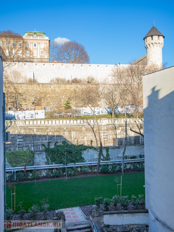 Eladó az I. kerületben a Tabánban, közvetlenül a Budai Vár lábánál a Dózsa György téren egy jó állapotú, liftes, gondozott nagy kerttel rendelkező társasházban lévő III. emeleti, 83nm-es, 3 szoba + konyhás, felújítandó állapotú, DNY-i fekvésű, klímás, napfényes lakás loggiával és szép kilátással a Naphegy illetve a Budai Vár irányába.
