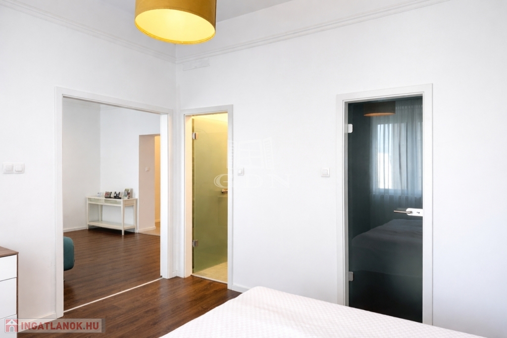 A tágas elrendezésű ingatlan három szobából, két elegáns fürdőszobából, valamint egy kényelmes gardróbszobából áll. A fűtést kombicirkó biztosítja, padlófűtéssel kiegészítve, a nyílászárók újak, a lakás minden helyisége kiváló állapotú.