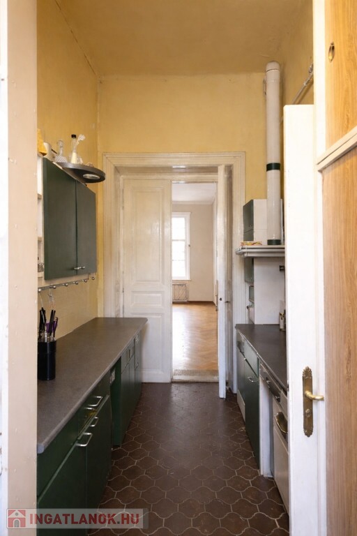 • az előtér – konyhatérből nyíló világos belső zöld udvarra KÖRNYEZETÉRE PANORÁMÁS NAPFÉNYES (délkeleti tájolású) tágas NAGYBELMAGASSÁGÚ (3,65m) SZOBA (kb. 26 nm), jelenleg faszerkezetű kis galériával (2*160m),
