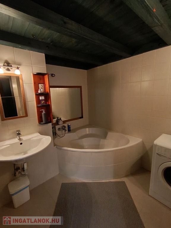 A fürdőszobában tágas sarokkádban fürödhetünk,a wc külön helyiségben kézmosóval is fel van