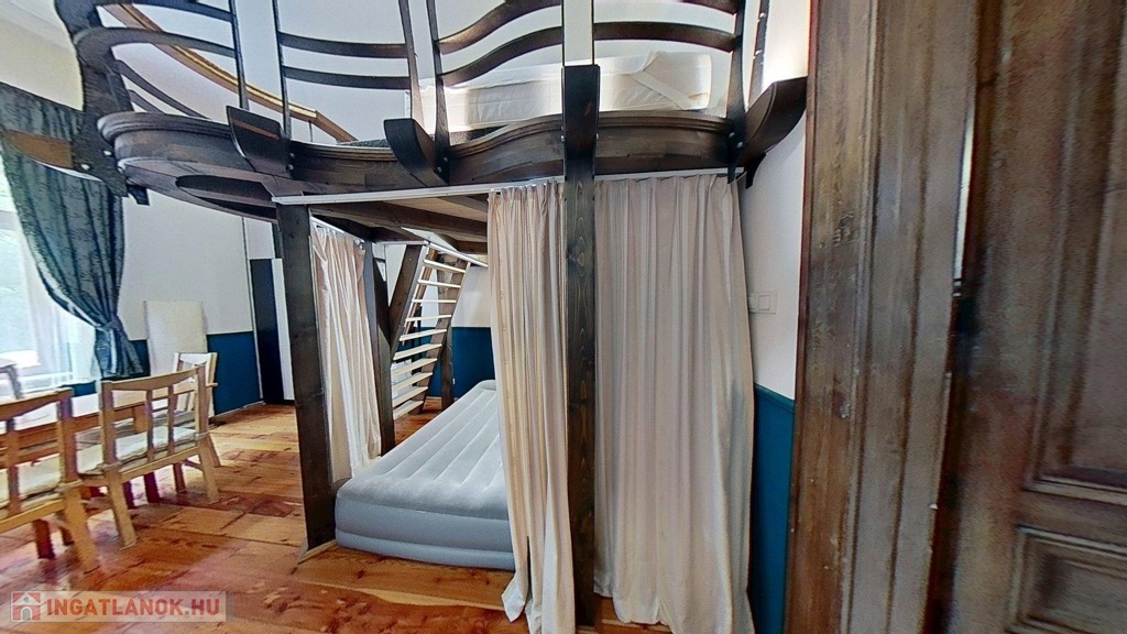 Két galéria is beépítésre került, a teljes szoba belmagasság 3.68 cm, a galériák 1. 6 m magasak,