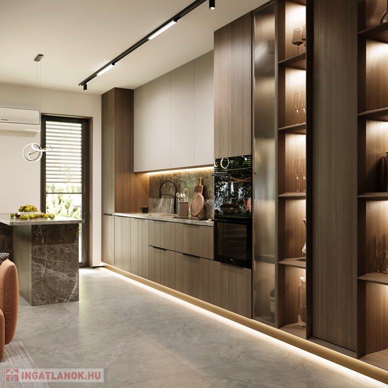 Az ingatlant prémium minőségű anyagok, átgondolt tervezés és praktikus, kényelmes elrendezés jellemzi.