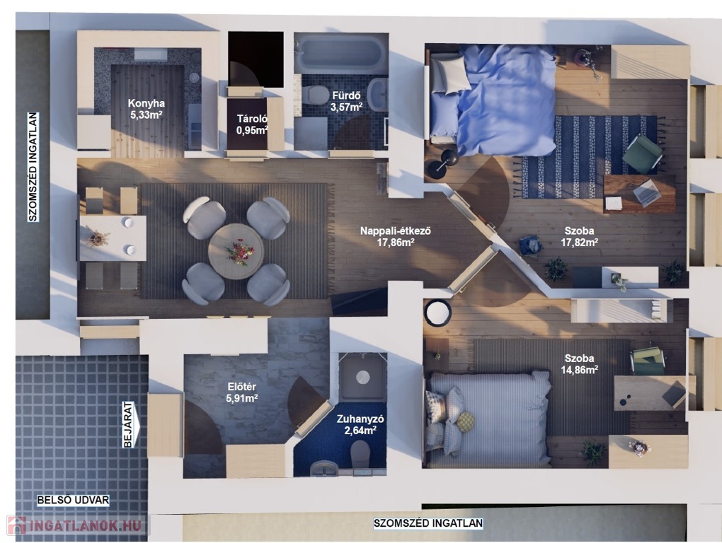 Két kisebb lakás kialakítására alkalmas