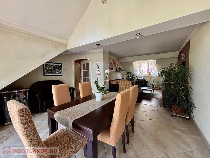 Az ingatlan egy két tulajdonossal rendelkező, négy lakásos házban található, használati megosztással. A lakás nettó 97 m² lakóterülettel, valamint 124 m² bruttó alapterülettel rendelkezik. A tulajdoni lap szerint az ingatlan 148 m², amelyhez egy kb. 100 m²-es, kizárólagos használatú kertrész is tartozik – ritka lehetőség ezen a környéken. További értéket képvisel a lakás felett végigfutó padlástér, amely tárolásra vagy akár további hasznosításra is alkalmas.