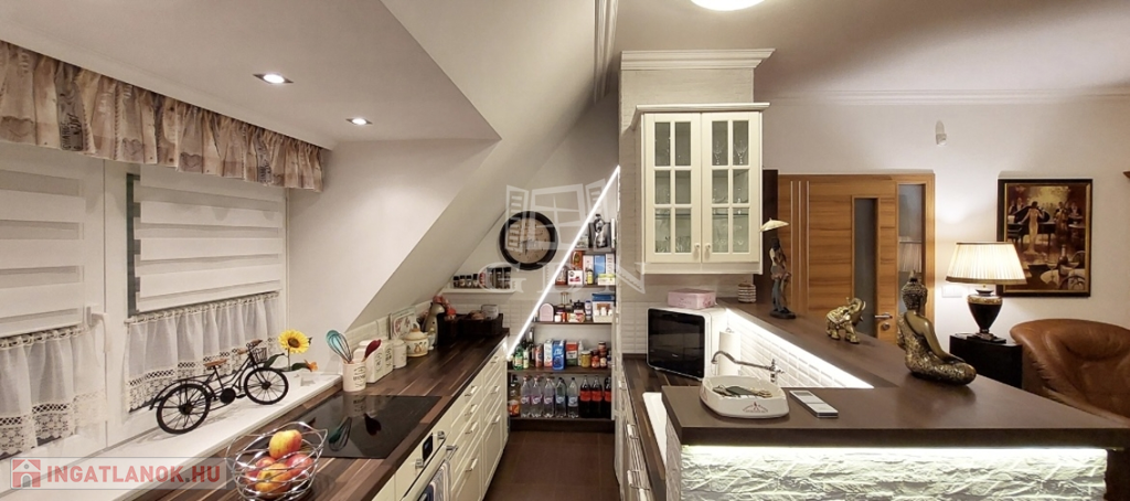 Az 5 lakásos, liftes társasházban található ingatlan világos, jól elosztott, magas minőségben kialakított. A konyha gépesített, a fürdőszobában Grohe és Duravit szaniterek, a nappaliból és hálóból hegyekre néző panoráma.