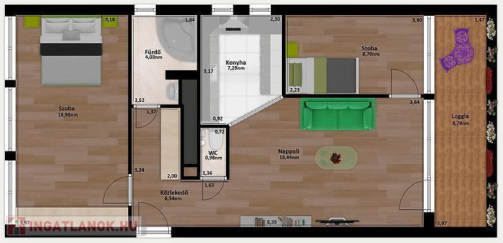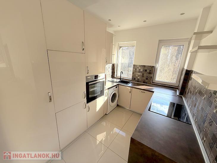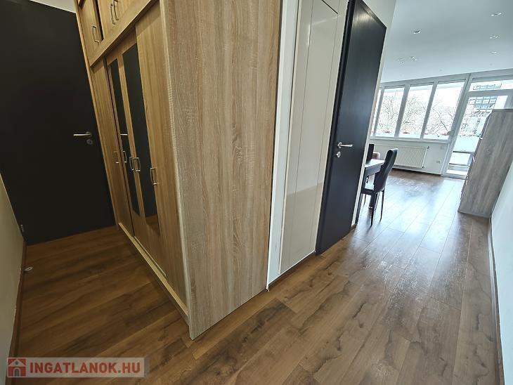 Ideális elosztású, IV. emeleten lévő lakás 2 lifttel rendelkező társasházban, 9 m2 –es loggiával. A ház csúsztatott zsalus technológiával épült, kulturált, rendezett környezetben található, jó közlekedésnél. A lakás 2018-ban teljeskörű felújításon esett át, mely során a vezetékek, a nyílászárók és a burkolatok mind cserére kerültek. A lakás fűtése házközponti egyedi méréssel, melynek díját a közösköltség tartalmaz. A társasházhoz tartozó telken a felnőttek pihenését kihelyezett padok, a gyerekek szórakozását pedig kialakított játszótér biztosítja.