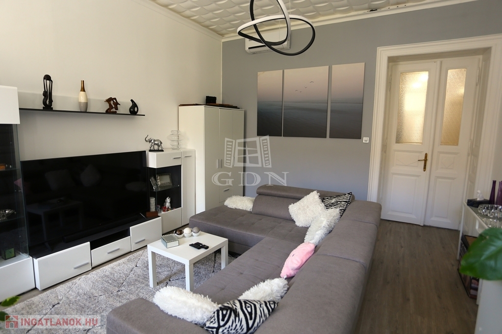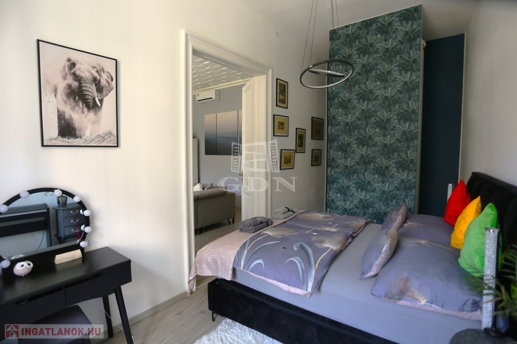 A 2021-2022-ben történt teljes körű felújításon átesett, D-Ny-i fekvésű lakás főbb paraméterei:
