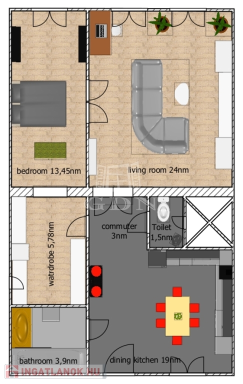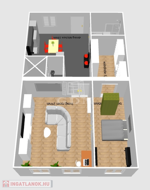 - átépítést követően nagyméretű gardrób és mosókonyha kialakítás,