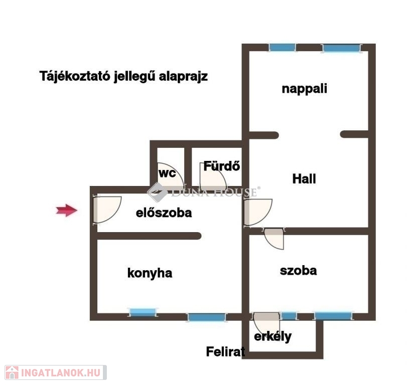 2 szoba + hall, de könnyen 2 hálószobássá alakítható