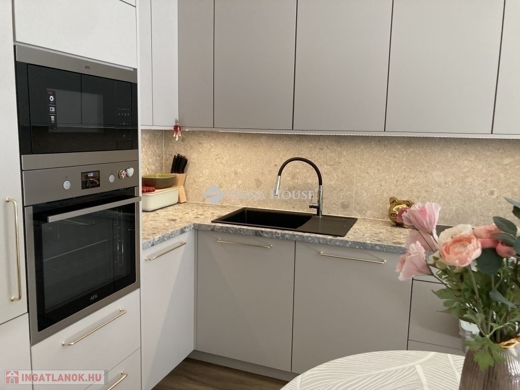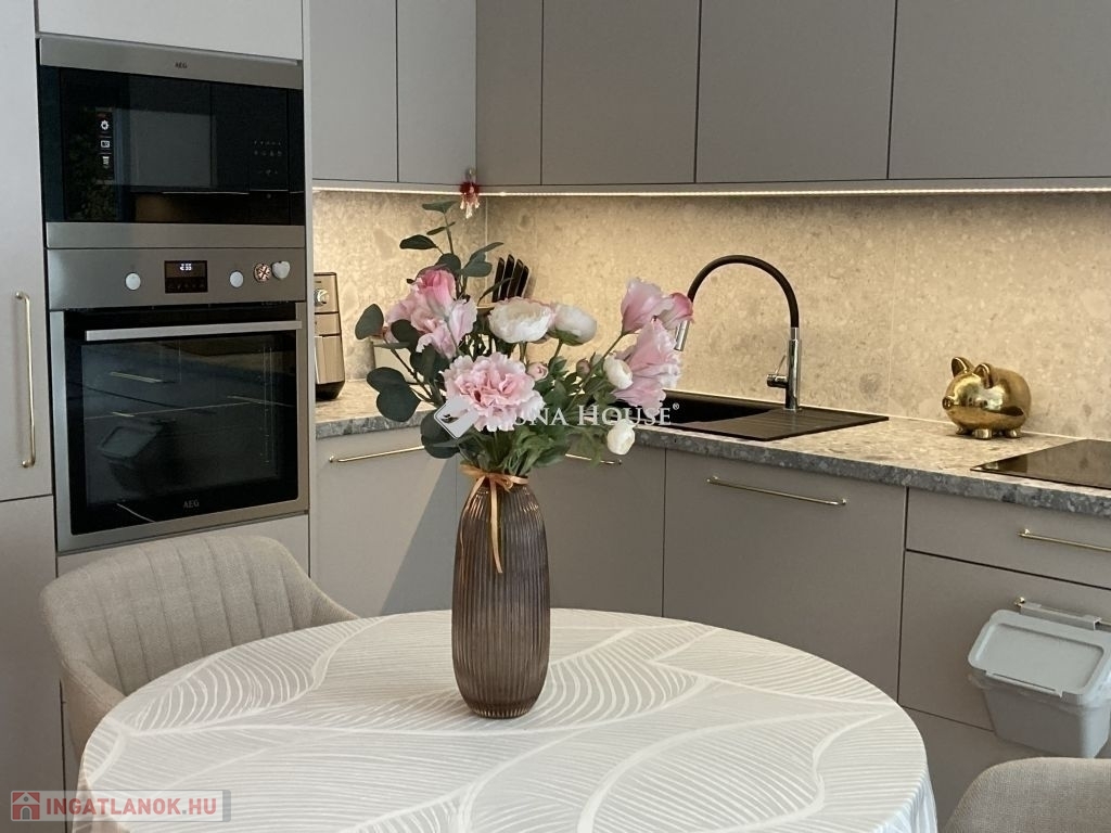 Nagy méretű, modern konyha AEG beépített gépekkel a vételár részeként