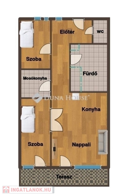 Nappali + 2 külön nyíló szoba
