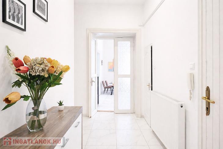 Keleti fekvésének köszönhetően a lakás rendkívül világos, a reggeli napfény természetes ragyogással tölti meg a tereket. A két fürdőszoba kényelmes és praktikus megoldást kínál akár család számára is. A felújítás során magas minőségű anyagokat és korszerű műszaki megoldásokat alkalmaztak, így az ingatlan azonnal költözhető, kompromisszumok nélkül.