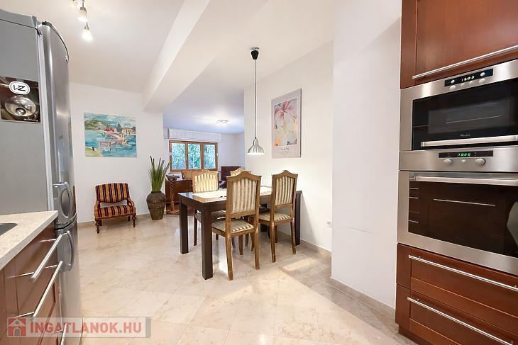 A lakáshoz 66 m²-es, kizárólagos használatú terasz és saját kertkapcsolat tartozik, amely ideális lehet kültéri étkező kialakítására, pihenő- vagy napozóhelynek, jelentősen megnövelve a lakás életterét. A lakás beépített bútorokkal felszerelt, így azonnal beköltözhető.