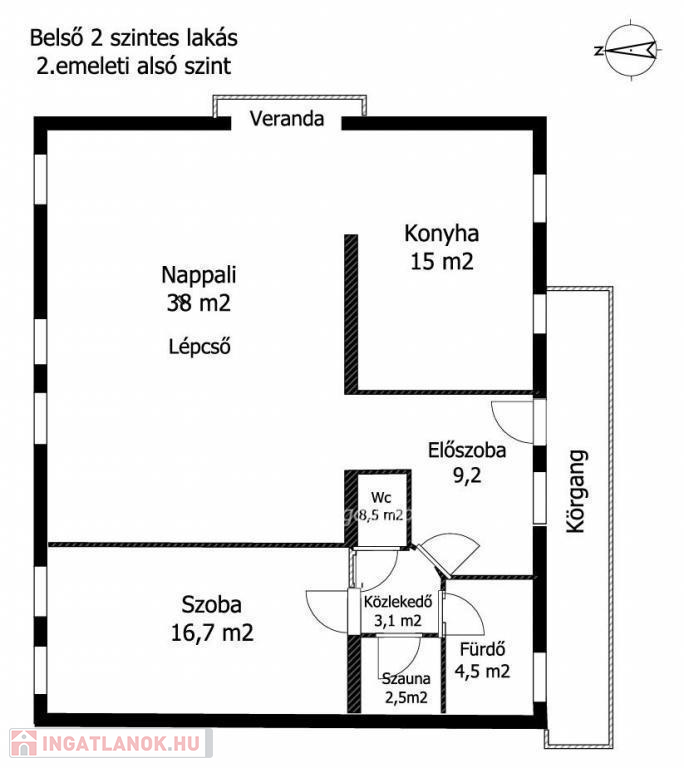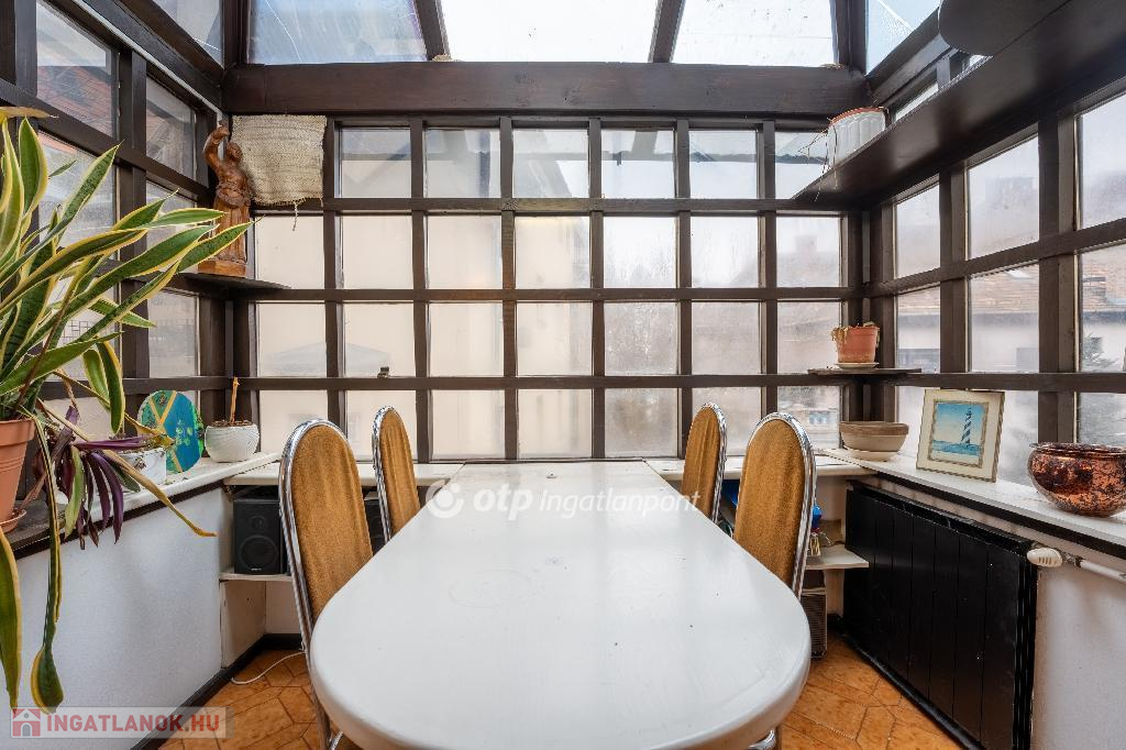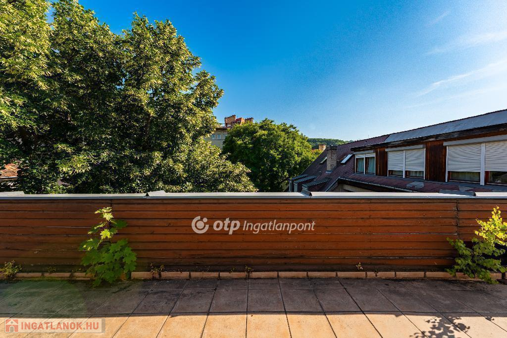 A 175 nm-es, belső kétszintes lakás jelenleg is jó beosztású. Világos és csendes, nagyvonalú terekkel rendelkező, jelenleg 3,5 szobás otthon. Jó alaprajzának köszönhetően több átalakítási lehetőség is rejlik a lakásban, amely amerikai konyhás nappali + 3-4 hálószobás lakássá is alakítható. Az ablakok a ház szép és csendes kertje felé néznek, DNY-i és ÉK-i tájolásúak. Az ingatlan egy 35 nm-es panorámás, tetőtéri terasszal rendelkezik, amely felújítás után az ingatlan egyik ékessége lesz.