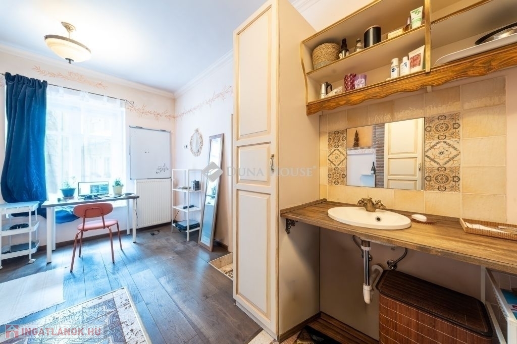 FELÚJÍTOTT NAGYPOLGÁRI LAKÁS A LÖVŐHÁZ UTCÁBAN MARCIBÁNYI TÉR SZOMSZÉDSÁGÁBANAlapadatok:- Alapterület: 97 m²- Szobák: 4 szoba- Emelet: félemelet, liftes ház- Állapot: gépészetileg felújítottLakás hangulat és kialakítás:- Nagypolgári karakter, 3 m feletti belmagassággal- Mediterrán, elegánsrusztikus belső hangulat- Több ponton beépített bútorok (gardrób, előszobabútorok, egyedi megoldások)- Két szoba láthatatlan, organikus megoldással hangszigetelve extra komfort és nyugalomMűszaki tartalom:- Korszerűsített gépészet és elektromos hálózat, az energiatakarékosság szemléletével- Komplett riasztórendszer kialakítva- Frissen bélelt kémény- Fűtés: gázkazánKomfort, elrendezés- Duplakomfort: fürdő és WC külön és egyben is- Étkező-központú, élhető térszervezés, ideális városi élethez, de otthonos, nyugodt atmoszférávalTársasház- 5 szintes épület, lift van- Rendezett, budai városi környezetben, klasszikus hangulattalLokáció amit nem kell magyarázni- Lövőház utcaEzredes utca sarok, Marcibányi téri sportcentrum közvetlen közelében- Jobbra a Lövőház utca felújított sétáló része, balra a Marcibányi tér zöldje és sportlehetőségei (futópályával)- Mammut és a környék teljes szolgáltatási kínálata séta távolságraKöltségek- Közös költség: 30 000 Ft/hó (felújítási alappal + víz, szemét)Kinek ideális?- Ha budai, klasszikus városi életérzést keresel, de fontos a zöld és a nyugalom is.- Ha olyan lakást szeretnél, ami kész, felújított, és nem a kompromisszumokról szól.- Ritka kombináció: nagypolgári méret + modern műszaki tartalom + Marcibányi/Mammut lokáció.Ez a környék és ez a lépték ritkán jön szembe felújított állapotban érdemes gyorsan időpontot foglalni.
