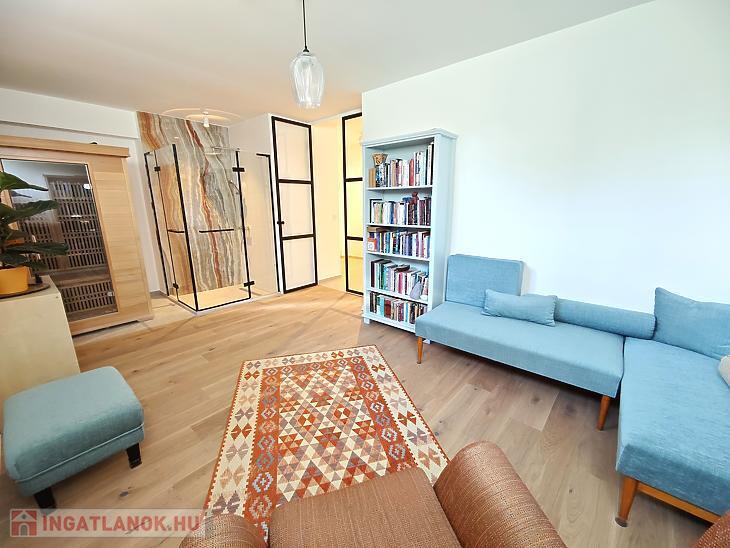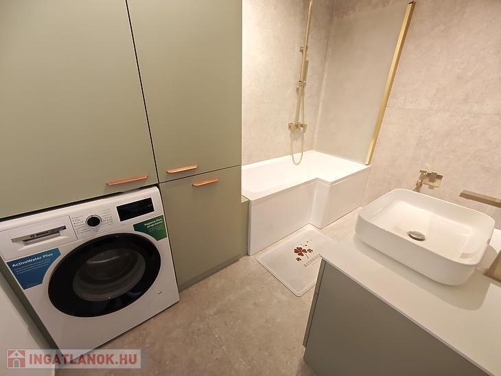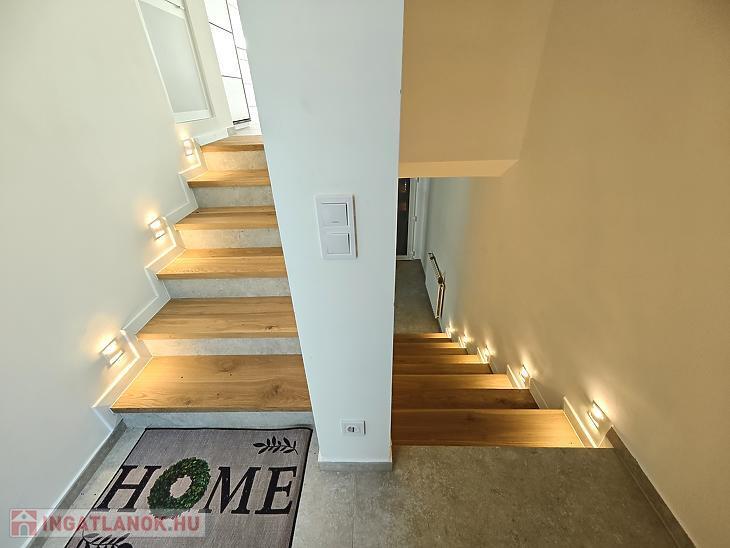 Az ingatlan fűtéséről egy Bosch kondenzációs kazán gondoskodik, a felső szinten padlófűtéssel, az alsó szinten pedig radiátoros fűtéssel. Szintén bekerült egy ultrahangos vízlágyító is. Mindkét szinten prémium minőségű burkolatok és szaniterek kerültek kiválasztásra és le-, illetve behelyezésre.