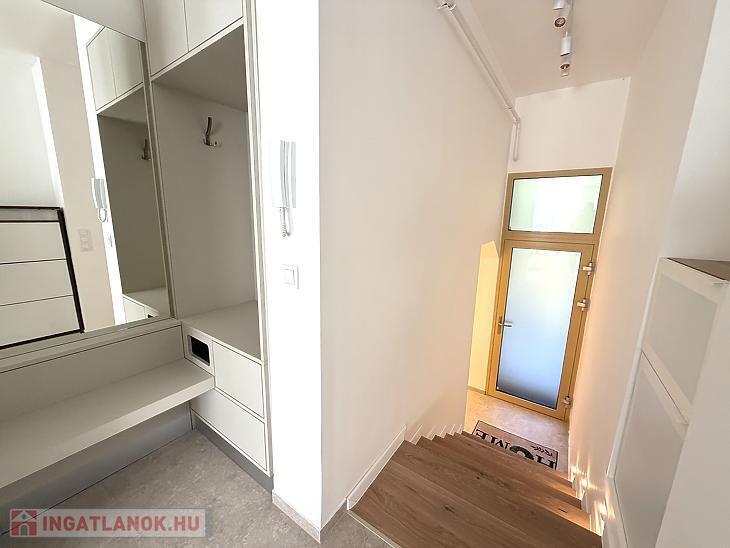 Pasaréti tértől pár percre, egyirányú kis mellékutcában, 8 lakásos házban eladó egy belső 2 szintes frissen, magas színvonalon felújított, DNY-i és DK-i fekvésű lakás.