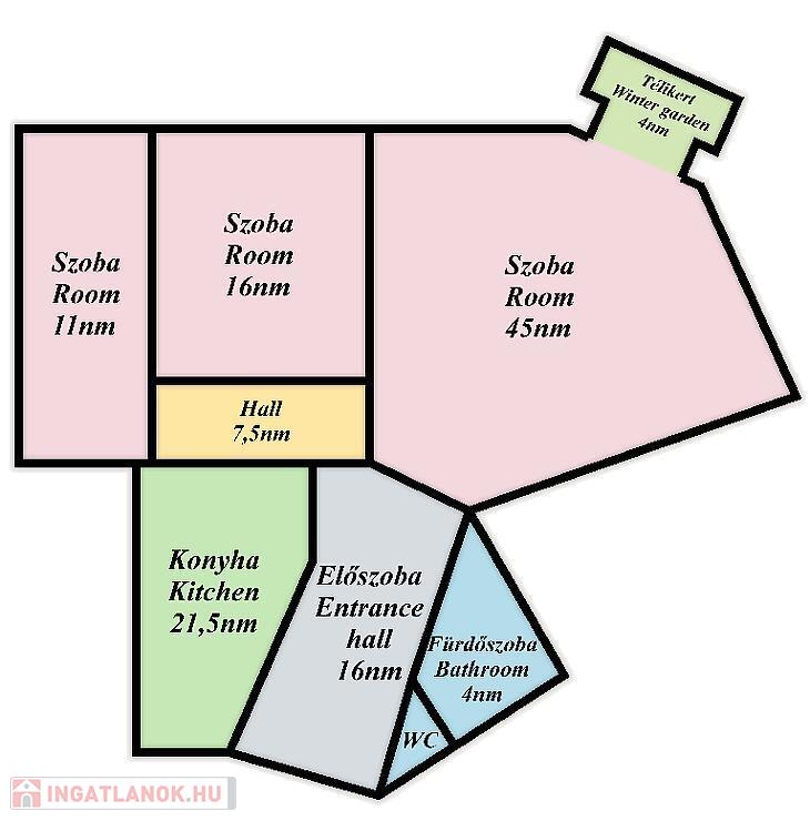 A 45 m²-es, elegáns fogadótérként is használható nappalihoz egy hangulatos, üvegezett télikert csatlakozik, amely akár váróteremként, tárgyalóként vagy relaxációs térként is hasznosítható. Emellett két külön nyíló, nagy méretű helyiség kínál lehetőséget rendelők, kezelőhelyiségek vagy irodák kialakítására.