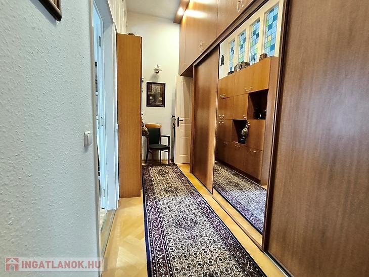 A tágas, klasszikus polgári lakás az alábbi helyiségekkel rendelkezik: