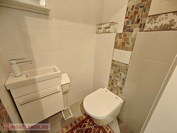 Az ingatlan fűtéséről egy Bosch kondenzációs kazán gondoskodik, a felső szinten padlófűtéssel, az alsó szinten pedig radiátoros fűtéssel. Szintén bekerült egy ultrahangos vízlágyító is. Mindkét szinten prémium minőségű burkolatok és szaniterek kerültek kiválasztásra és le-, illetve behelyezésre.