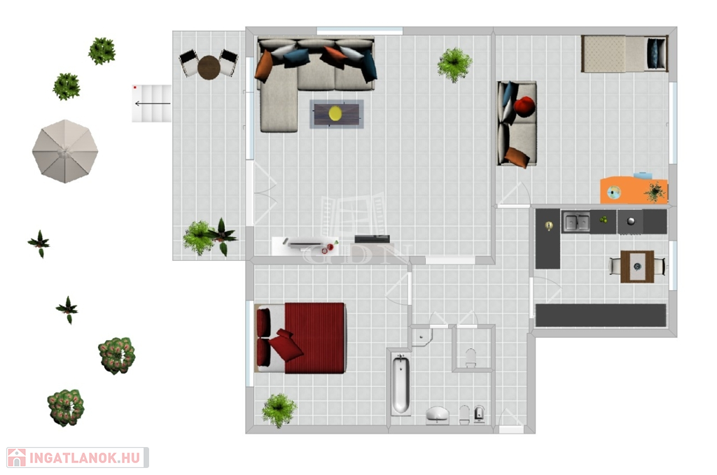 közvetlen KERTKAPCSOLAT mobil lépcsővel megoldott.