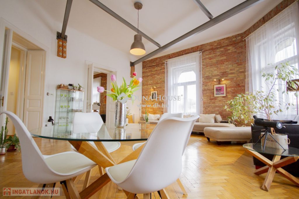 Ennek az ízlésesen felújított nagypolgári lakásnak minden ablakából panoráma nyílik a Dunára, a Margit-hídra, a Parlamentre.