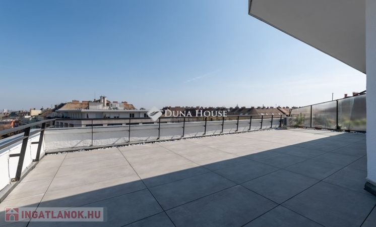 A Wow faktor: A lakás ékköve a hatalmas tetőterasz, amely méretéből adódóan alkalmas kerti partik rendezésére, privát napozásra vagy akár egy kültéri lounge kialakítására is. Ez a méret ebben a magasságban és lokációban igazi ritkaság!