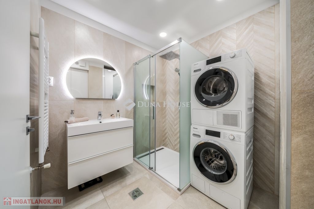 SOS KIVÉTELES lehetőség extra jó áron!!!!RÓZSADOMB szívében eladóvá vált prémium minőségű, 3 hálószobás, 2 fürdőszobás, dupla teraszos lakás!A II. kerület egyik legnyugodtabb, mégis kiválóan megközelíthető részén eladó ez a teljes körűen felújított, napfényben úszó, madárcsicsergős otthon, amelyet a nagy üvegfelületek és a körben áradó fény, valamint a dupla terasz tesz igazán különlegessé.A tágas, egybenyitott nappaliétkezőkonyha tér a lakás központi eleme, ahol a modern kialakítás, az elegáns részletek és a délkeleti tájolás egyedülálló életteret teremtenek. Két terasz kapcsolódik az ingatlanhoz, így a reggeli kávé vagy az esti pihenés mindig a természet közelségében telhet.A lakás három kényelmes szobát kínál: egy tágas szülői hálót, egy gyerekszobát és egy dolgozó- vagy vendégszobát.A két fürdőszoba, valamint a közlekedőkben kialakított, hatalmas, 8 folyóméteres gardróbfolyosó biztosítja a mindennapok kényelmét és rendezettségét.A lakáshoz tartozik egy külön, 5 nm-es tároló (4 M Ft értékben), valamint egy dupla garázs (30 M Ft értékben), amelyek tovább növelik az ingatlan értékét és komfortját. A lakásban található minőségi mobiliák (4 M Ft) egyedi megállapodás keretében elérhetők.Fontos információ: a lakás minimális rezsivel fenntartható (áram: 7 e Ft/hó, gáz: 12 e Ft/hó, víz: 5 e Ft/hó) a 2020-ban kialakított 25 cm-es hőszigetelésnek, valamint a tavaly beépített új Remeha kazánnak és kéménybélelésnek köszönhetően. A lakás generálfelújítást kapott 2022-ben.Ez az otthon nem csupán egy ingatlan, hanem a modern, kifinomult városi élet megtestesítője, ahol a fény, a tér és az elegancia tökéletes egységbe rendeződik.Várom megtisztelő megkeresésüket, akár hétvégén is!
