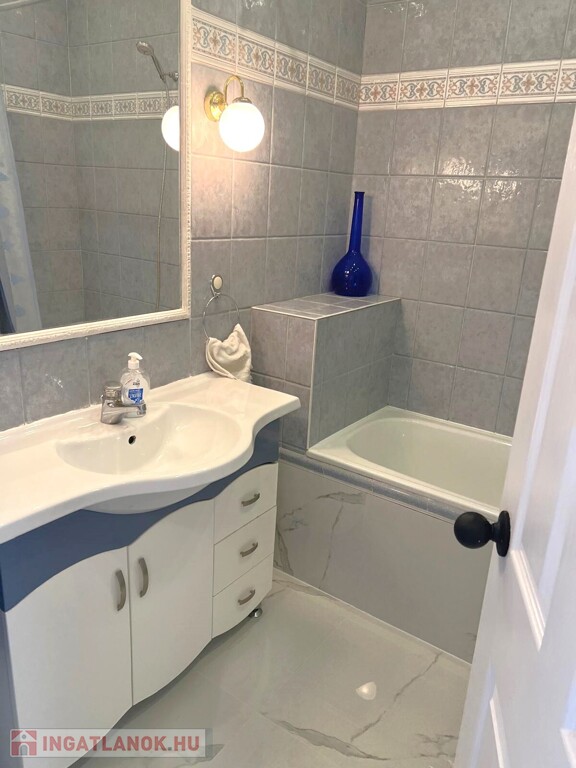 The large windows of the American kitchen-dining room and living room let in sunlight, and from the balcony you can enjoy a beautiful panorama of the Buda hills and the garden with a pool. The windows are equipped with shutters. The apartment was completely renovated in 2006.