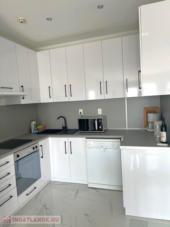 A konyha elektromos tűzhellyel, mosogatógéppel, hűtővel felszerelt.