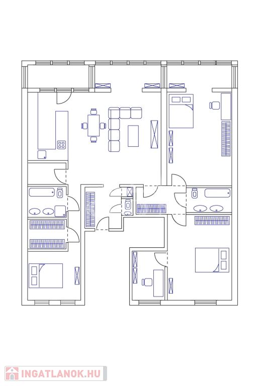 -Hálószobák:  a nappali két oldalán található a három különnyíló hálószoba. Emellett van egy kisebb szoba is, amely irodának vagy vendégszobának is tökéletesen használható.