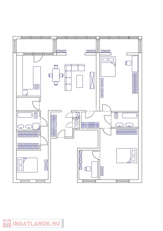-Hálószobák: a nappali két oldalán található a három különnyíló hálószoba. Emellett van egy kisebb szoba is, amely irodának vagy vendégszobának is tökéletesen használható.