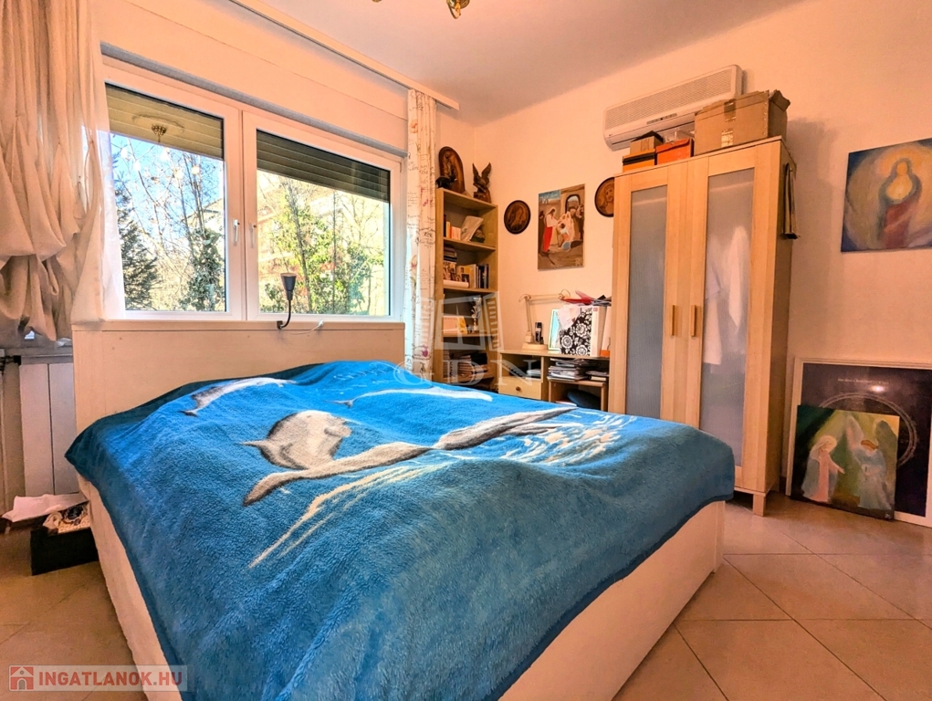 Csendes, zöld udvarra néző nappali és hálószoba