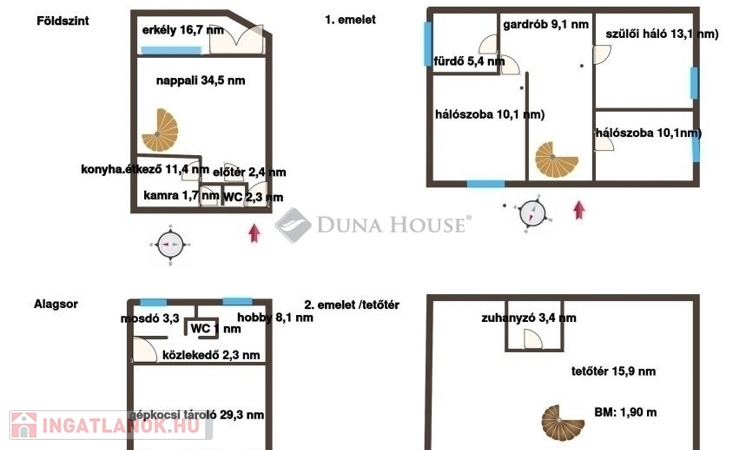 A II. kerület zöldövezeti, rendkívül keresett részén, Törökvészen kínálunk eladásra egy 184 m²-es, 4 szintes, panorámás, szélső sorházi otthont.