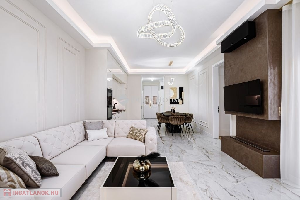 ERKÉLYES DUNAI PANORÁMÁS LUXUS KIVITELEZÉSBEN FELÚJÍTOTT 91-nm-es LAKÁS ELADÓ!2. kerület frekventált részén a Bem József utcában eladóvá vált ez a 91 nm-es, 5nm-es erkéllyel rendelkező, utcai nézetű, Dunai panorámás, napfényes, luxus kivitelezésben felújított lakás, amely egy rendezett, szép állapotú Társasház 3.emeletén található.A belsőépítészek nagy hangsúlyt fektettek a lehető legpraktikusabb elrendezésre, ezzel is minél jobban kihasználva a lakás adottságait. Így került kialakításra 2 hálószoba, 2 fürdőszoba, tágas gépesített konyha étkezővel, hatalmas nappali, tágas előszoba és egy gardrób szoba.A lakásban a bútorok egyrészt neves lakberendező által egyedileg tervezett és gyártott exkluzív, illetve egyedi olasz desing bútorokkal berendezett, melyeket még szebbé varázsolnak a gyönyörű textíliák.Minden térben található egy-egy jól használható, azaz tárolásra alkalmas beépített bútordarab, így például a lakásban lévő beépített szekrények rengeteg rakodófelületet biztosítanak az új lakók számára. A lakás továbbá teljeskörűen gépesített, mosó-szárítógéppel, mosogatógéppel, beépített minőségi konyhagépekkel, hangszigeteléssel, Daikin hűtő-fűtő klímákkal felszerelt.Hálószobák díszfalai kővel és lamellákkal burkoltak, melyek exkluzív, szép felületei egyedi és különleges hatást kölcsönöznek a térnek. Az ágyak egyedileg ide tervezett kárpit fejvégeket kaptak, melyek mögött egyedileg tervezett világítástechnika került kialakításra, hogy még hangulatosabbá tegye a hálószobákat.A fürdőszobákban kiváló minőségű szaniterek (Laufen, Blanco Blancozia, Arezzo...stb.) és a lakás stílusához illő olasz design burkolatok kerültek felhasználásra. A nappaliban és hálószobákban kiváló technikával rendelkező okos TV-k kerültek felszerelése, illetve Daikin klímák kerültek beépítésre. Neves designerek dekorációi igazán modern, mégis elegáns hangulatúvá teszik az ingatlant.A vételár tartalmazza a teljes bútorzatot és kiegészítőket!Extrák:Led világítás, Klíma, Bio kandalló, Hangszigetelés, Gránit mosogató, Egyedileg gyártott olasz bútorok, Mosható falfelületek, Bio kandalló, klímákAz elegáns megjelenést kölcsönöz ismert tervezők textíliái és dekorációs elemei.-2023-ban teljeskörű felújítás-Daikin Hűtő-fűtő Klíma-Panoráma Dunára, Margithídra-Tágas panorámás erkély-Hőszigetelt nyílászárók-Szomszédos oldalak és utca felőli falfelületek hangszigetelése-Az ablakok alumínium elektromos redőnyökkel felszerelt-Minőségi konyhagépek kerültek beszerelésre-Igényes olasz dezing bútorokkal berendezettParkolási lehetőség:A társasház mellett lévő szálloda teremgarázsában autóbeálló bérelhető vagy vásárolható.Környék:A környék frekventált, Margit híd, Margitsziget és a Duna part sétatávolságra található. A ház mellett épül a BEM projekt, itt luxus szállodát, irodaházat létesítenek, parkosítanak, korlátozzák a forgalmat.Amennyiben az ingatlan felkeltette érdeklődését, keressen bizalommal a részletekkel kapcsolatosan.FEELING OF LIFE IN BUDA..!RENOVATED 91 sqm APARTMENT WITH BALCONY AND PANORAMIC DANUBE VIEW FOR SALE!In Bem József utca, a frequented part of the 2nd district, this 91 sqm, 5 sqm balcony, street view,Danube panoramic, sunny, luxuriously renovated apartment is for sale, located on the 3rd floor of anorderly, well-maintained condominium.The interior designers put a lot of emphasis on the most practical layout possible, thus making themost of the apartment, 2 bedrooms, 2 bathrooms, a spacious mechanized kitchen with a diningroom, a huge living room, a spacious hall and a wardrobe room.The furniture in the apartment is furnished with exclusive and unique Italian design furnitureindividually designed and manufactured by a renowned interior designer, which is made even morebeautiful by the beautiful textiles.Every space has a built-in piece of furniture that can be suitable for storage, so for example the built-in wardrobes in the apartment provide plenty of storage space for the new residents. The apartmentis also fully mechanized, equipped with a washer-dryer, a dishwasher, built-in quality kitchenappliances, sound insulation, and Daikin cooling and heating air conditioners.The decorative walls of the bedrooms are covered with stone and slats, the exclusive, beautifulsurfaces of which give the space a unique and special effect. The beds were given custom-designedupholstery headboards, behind which individually designed lighting technology was installed to makethe bedrooms even more cozy.In the bathrooms, high-quality sanitary ware (Laufen, Blanco Blancozia, Arezzo...etc.) and Italiandesign coverings matching the style of the apartment were used. Smart TVs with excellenttechnology were installed in the living room and bedrooms, and Daikin air conditioners wereinstalled. Decorations by well-known designers give the property a truly modern, yet elegantatmosphere.Extras:Led lighting, Air conditioning, Bio fireplace, Sound insulation, Granite sink, Custom-made Italianfurniture, Washable wall surfaces, Bio fireplace, air conditionersTextiles and decorative elements from well-known designers give it an elegant look.- Complete renovation in 2023-Daikin Cooling-heating Air conditioner- Panorama of the Danube, Margthíd-Spacious panoramic balcony-Heat-insulated doors and windows-Sound insulation of neighboring sides and wall surfaces facing the street-The windows are equipped with aluminum electric shutters- Quality kitchen appliances have been installed- Furnished with refined Italian design furnitureParking opportunity:A parking space can be rented or purchased in the garage of the hotel next to the apartmentbuilding.Surroundings:The neighborhood is frequented, Margit Bridge, Margit Island and the Danube shore