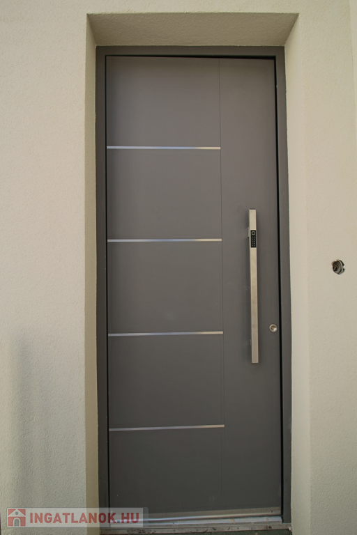 Nyílászárók: 77 mm. profil vastagságú,Hofstadter Woodstyle Zero, fa-alumínium, hossztoldott, rétegragasztott kivitel, 3 rétegű üvegezéssel, kívül (7004-FS) alumínium szín, belül (RAL 9016) fehér szín, átütő fa erezettel. Emelő-toló ajtóknál, azonos natúr fa kivitelben belső takaró elem készül.