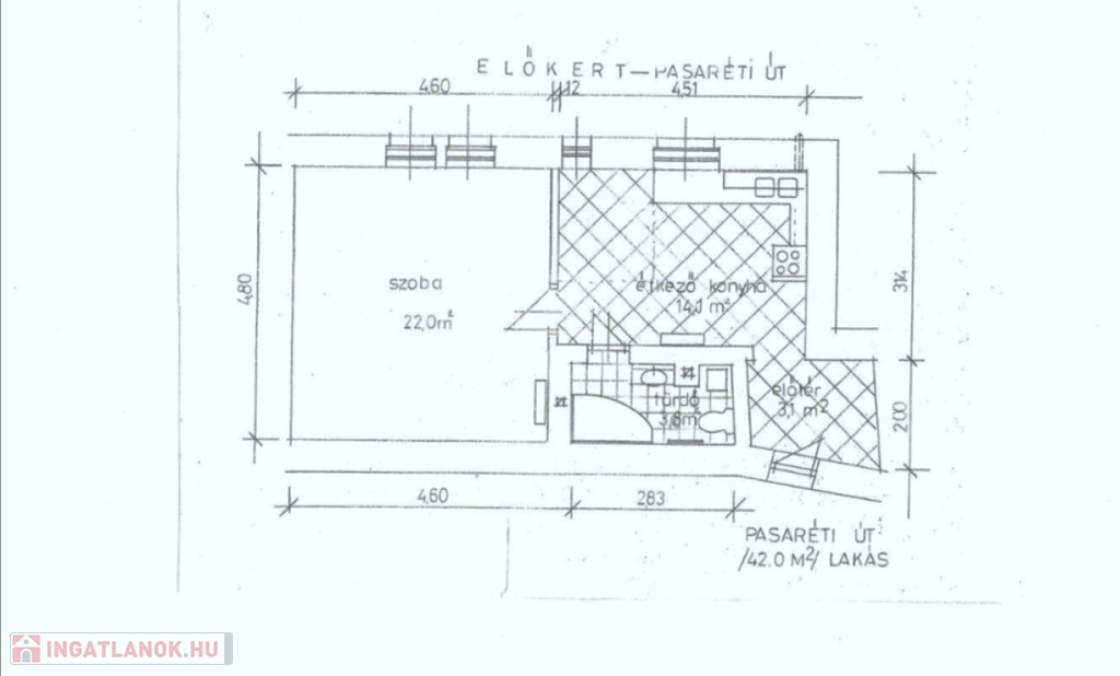 II. Ker Pasaréti úton 42nm-es, konyha- nappali+szoba +fürdőszobás, ÉK-i tájolású előkertre néző szuterenlakás eladó.