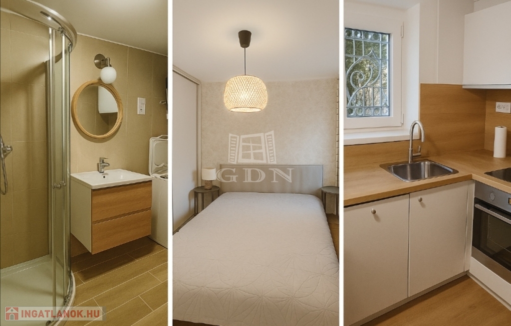 38 m² (valós 39 m²), nappali + háló, étkezős konyha, zuhanyzós fürdő.