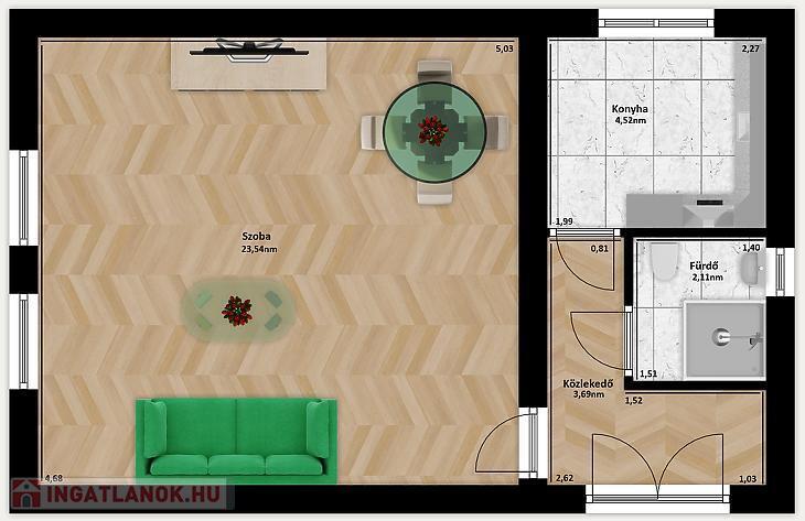 A lakás szerves részét képezi a közvetlenül mellette található 2nm-es kamra.