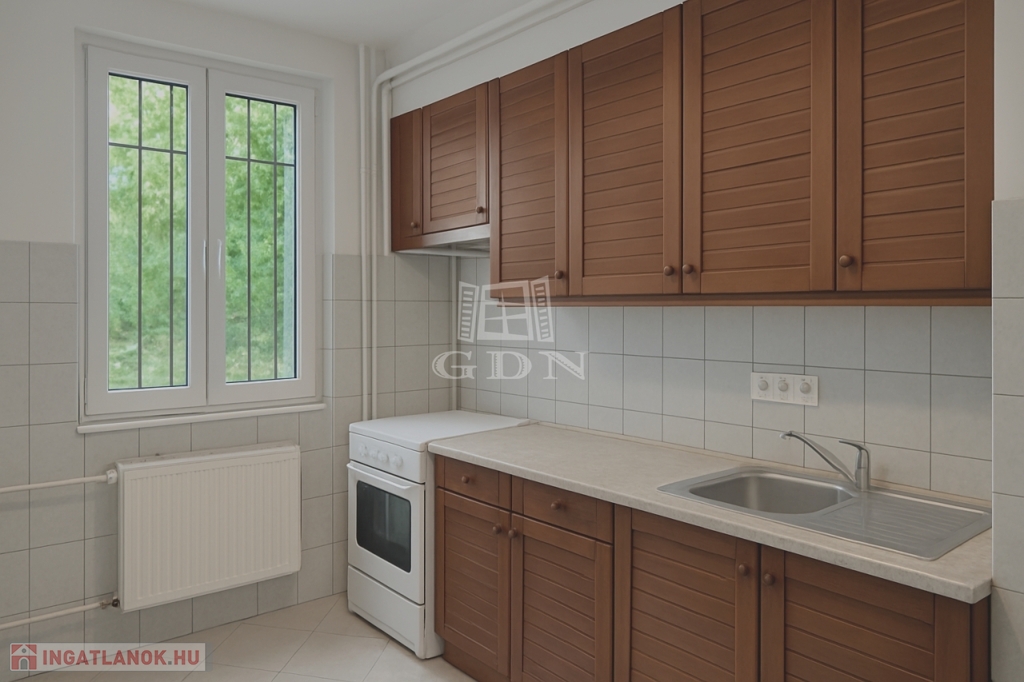 A Zsigmond térnél, rendezett tégla társasház magasföldszintjén eladó egy 48m²-es, jó állapotú, 1 + 1 félszobás otthon.
